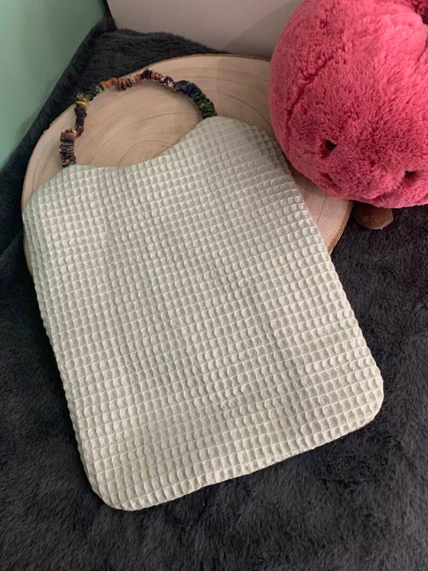 Cette serviette dispose d'une face en popeline de coton à motifs et d'une face absorbante en coton éponge nid d’abeille.